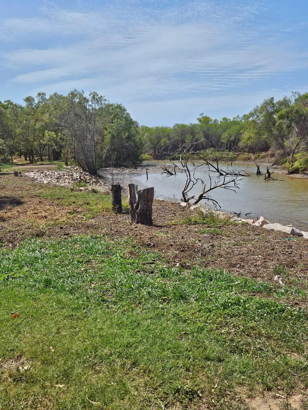 2020 – Photo taken in August, four months after the Development Application was submitted to SARA. Little marine vegetation had re-established, and caravans were back metres away from the top of the eroded bank. The bank had deteriorated to a serious safety issue for Burdekin Shire Council and the River Trust with the caravan park packed with visitors.